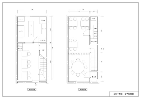 1階は4人掛けのテーブルが2つと、2名掛けのテーブルが1つあります。